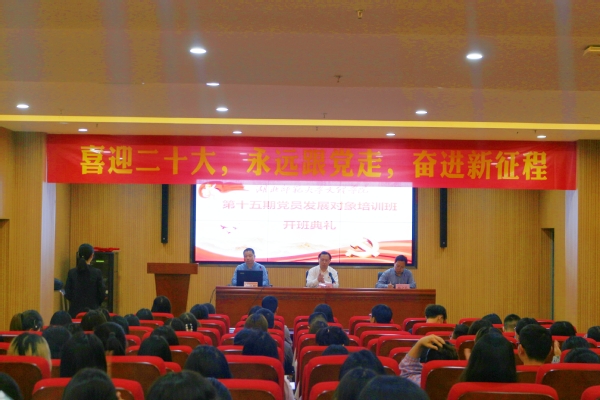 5月16日晚,乐鱼(中国)官方在图书馆报告厅举办学校第15期党员发展对象培训班开班典礼。党委书记杨邓红、党委副书记杨之毛,及党群工作部人员、部分党支部书记、第15期发展对象培训班全体学员等近100人参加了开班典礼。