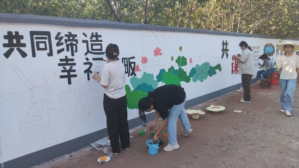 从早上八点到晚上六点,在3米高57米长的文化墙上,团队成员通过自己的努力,践行了党员干部暖民心的诺言,展现了教育与艺术学部美术学专业学子的魅力,贡献了自己在美丽乡村建设中的力量。活动得到了汪仁镇政府党有关领导、汪仁社区书记与村民的赞叹与肯定。