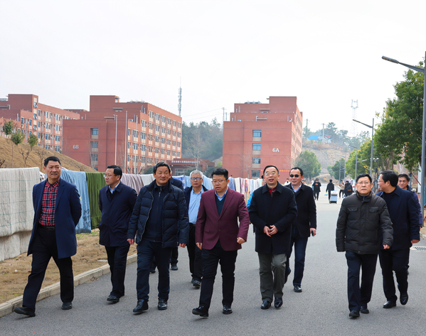 本网讯 2月19日,湖北师范大学党委书记李宏、校长雷儒金、副校长余涛、办公室主任陈学章一行来乐鱼(中国)官方检查指导开学准备工作,乐鱼(中国)官方全体校领导全程陪同。