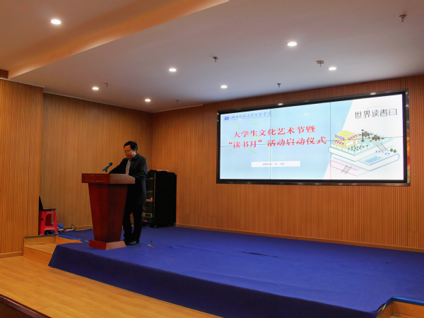 本网讯(通讯员 刘健美)3月31日中午,乐鱼(中国)官方在图书馆报告厅举行了大学生文化艺术节暨“读书月”活动启动仪式。校党委副书记杨之毛,党委宣传部副部长陶晚成,学生工作部部长汪崇文,学生工作部副部长、团委书记陈荟芸,图书馆馆长郑荣臻以及百余名学生代表参加了此次启动仪式。本次活动由郑荣臻主持。