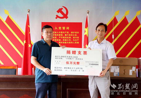 在村党群活动中心,杨学斌代表乐鱼(中国)向子山村捐赠5万元乡村振兴专项资金,并向子山村卫生室捐赠办公电脑和打印机。