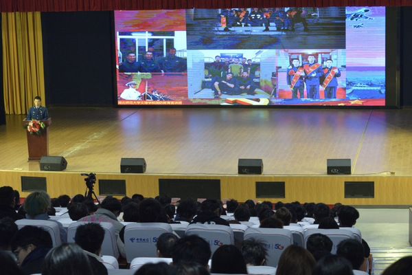 当天的征兵宣传活动内容丰富:老兵程博用一曲《当那一天来临》暖场,强劲嘹亮的声音瞬间点燃观众的激情。黄石市2024年征兵宣传片引导青年学子认识献身国防的责任和意义。还有国防教育宣讲团老兵分享了曾经的故事:“巾帼不让须眉”的黄珍用热爱奔赴理想,机务兵张顺在军营里的默默守护,老兵黄海宇出征救援的经历。老兵的故事,赢得观众的阵阵掌声。