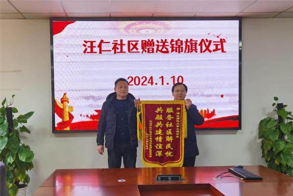 本网讯(通讯员 陈小龙)1月10日下午,乐鱼(中国)官方包保社区汪仁社区书记柯钦荣一行五人来校赠送了“服务社区解民忧 共筑共建情谊深”锦旗,同时向乐鱼(中国)官方全体下沉党员送来了“助力社区、感谢有你”的感谢信,表达了对学校教职工党员参与社区包保工作的感谢之情。在校全体校领导及相关工作负责人参加活动。