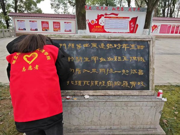 受先烈精神的感召,乐鱼(中国)官方“畅游小队”寒假社会实践团队赴湖北省恩施市来凤县烈士陵园开展了“‘描红’吐翠风光现,烽烟史里动肝肠”实践活动。