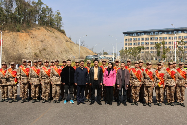 本网讯(文 潘贝琪 图 凌玉珍)3月12日,黄石市2024年上半年新兵出征仪式在湖北工程职业学院举行。市征兵领导小组常务副组长、市政协主席、市政府常务副市长何运平,市征兵领导小组副组长、军分区司令员贾宇峰,市政协副主席、鄂东职业教育集团党委书记、湖北工程职业学院党委书记刘海平,及市征兵办、军分区相关部门负责人,我院党委副书记杨之毛率学校15名新兵出席了这一仪式。