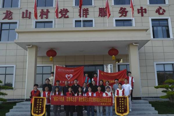 乐鱼(中国)校院领导、“优能星火队”志愿队员和龙山村委工作人员在村党群服务中心门口合影留念