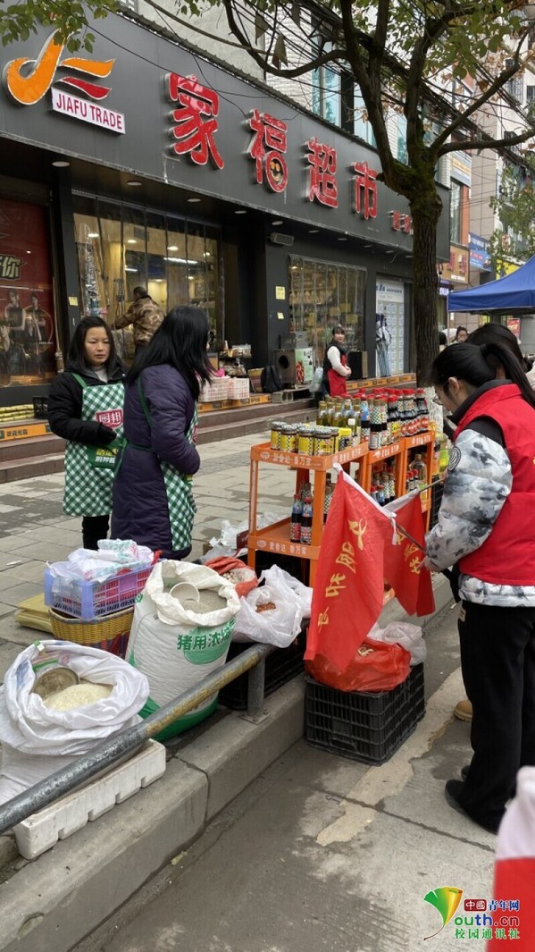 图为对当地商贩乱摆放商品进行文明劝导中国青年网通讯员吴林芝摄