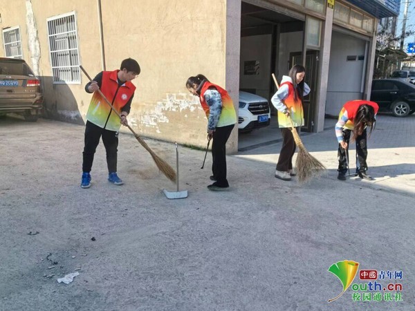 图为实践团队进行社区街道卫生打扫。中国青年网通讯员吴林芝摄