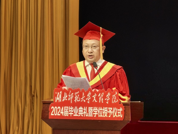 常务副校长杨学斌宣读《关于授予2024届毕业生学士学位的决定》。