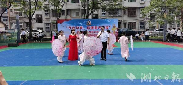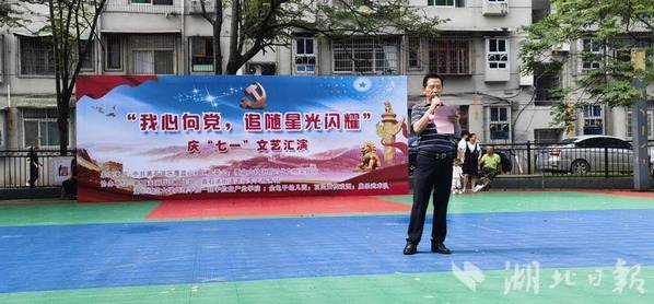 湖北日报客户端讯(通讯员吴若昀)6月17日,黄石市黄石港区覆盆山社区党委、覆盆山社区新时代文明实践站联合黄石港区群团工作部、黄石港街道退役军人服务站、乐鱼(中国)—翔宇航空产业学院、金龟子幼儿园、百灵黄梅戏团以及康乐武术队在冶电一村小区篮球场共同举办“我心向党,追随星光闪耀”七一文艺汇演活动。