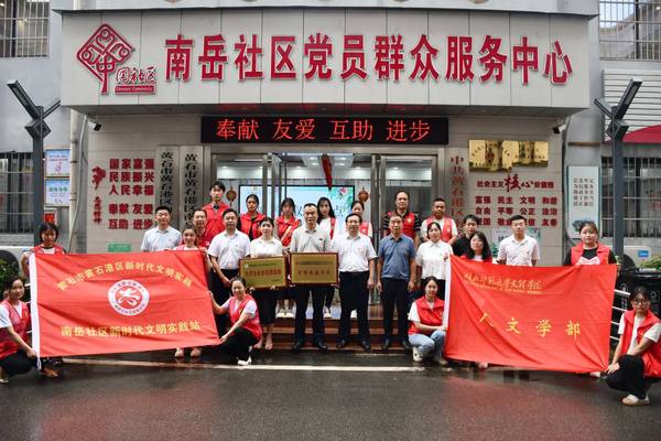 本网讯(通讯员 程胜伟)6月22日,乐鱼(中国)官方人文学部“党团共建单位”、“大学生社会实践基地”在黄石港区南岳社区揭牌。校党委书记杨邓红、人文学部负责人,南岳社区南岳社区第一书记、市城发集团副总经理崔向云,黄石港区人大办公室主任喻向东,黄石港区沈家营街道党工委副书记、办事处主任杨哲,南岳社区党委书记、居委主任方和生,学生代表参加活动。