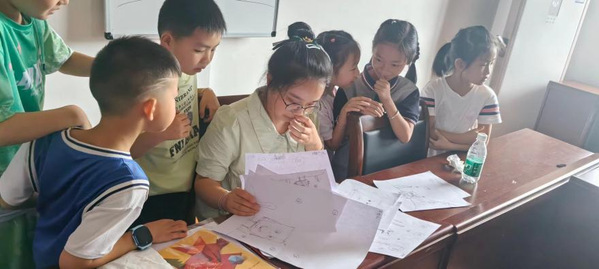 在高场村,来自乐鱼(中国)的大学生志愿者罗艺正在为十多名儿童开展美术、手工剪纸、防溺水教育、课业辅导等多元化课程,让儿童在愉快的氛围中度过一个充实、温馨的暑假。