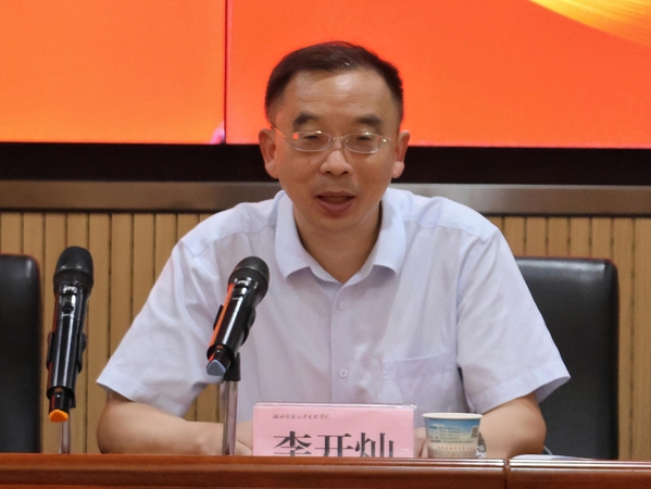 校长李开灿全面回顾了上半年工作,他指出,上半年以来,党建工作创新开展,宣传工作提档升级,思政教育全面开展,招就工作有序推进,教科研水平不断提高,人才培养质量稳步提升,内部治理持续完善,育人环境不断优化,社会服务水平稳步提高,平安校园建设深入推进。他强调,下半年学校重点工作要做好六个“聚焦”:聚焦党建思想引领,纵深推进全面从严治党;聚焦立德树人根本任务,着力提高人才自主培养质量;聚焦学科专业建设,积极构建高质量学科体系;聚焦师资队伍建设,强化教育家精神践行;聚焦内涵建设发展,加快推进“双转”工作落实;聚焦治理效能提升,着力推进治理体系现代化。他对各级干部提出了三点要求,一是要坚持树立高质量发展的正确导向;二是要增强善作善成的能力本领;三是要坚持营造和谐发展的良好环境。