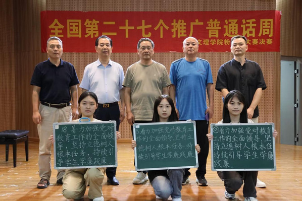 本届推普周以特色活动为载体。人文学部承办开展了“传承红色经典,谱写时代之歌”主题朗诵比赛。决赛于9月19日晚在图书馆报告厅举行,朗诵形式多样,并辅以配乐、视频和表演等多种方式,有的情感细腻,有的气势磅礴。字正腔圆,声情并茂的朗诵,得到评委和观众的好评。校语委会主办、教育与艺术学部承办开展了“粉笔字”比赛。在各学部预赛的基础上,决赛于9月23日晚在活动中心302举行。比赛内容为书写“着力加强党对教育工作的全面领导,坚持立德树人根本任务,持续引导学生学廉践廉”,有的作品刚劲有力、有的潇洒飘逸、有的大方得体、展示出参赛选手的书法才能。这些活动不仅增强了学生的语言表达能力,更激发了他们自觉使用普通话的意识和自豪感。