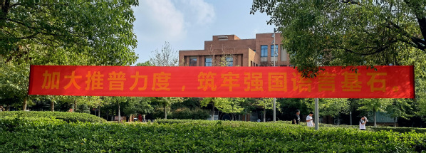 本届推普周营造了良好的校园氛围,赢得全校师生的关注。校语委会、宣传部通过横幅、展板、电子屏等载体向全校师生宣传党和国家的语言文字法律法规,为推普周活动营造了良好的氛围;充分利用新媒体,开展线上线下宣传活动,扩大服务范围和参与人数;将推普周宣传活动与日常教学有机结合,着重加强国家通用语言文字教育;校语委会同党办、宣传部、学工部、图书馆及各学部共同协作宣传组织,做到人人知晓,个个参与。