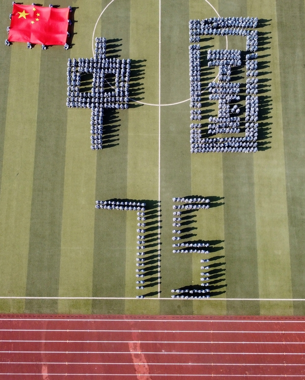 分列方阵的检阅结束后,摆字方阵伴随悠扬的音乐变换队形,用精准的动作歌颂伟大祖国,给现场师生带来精彩的视觉瞰宴。