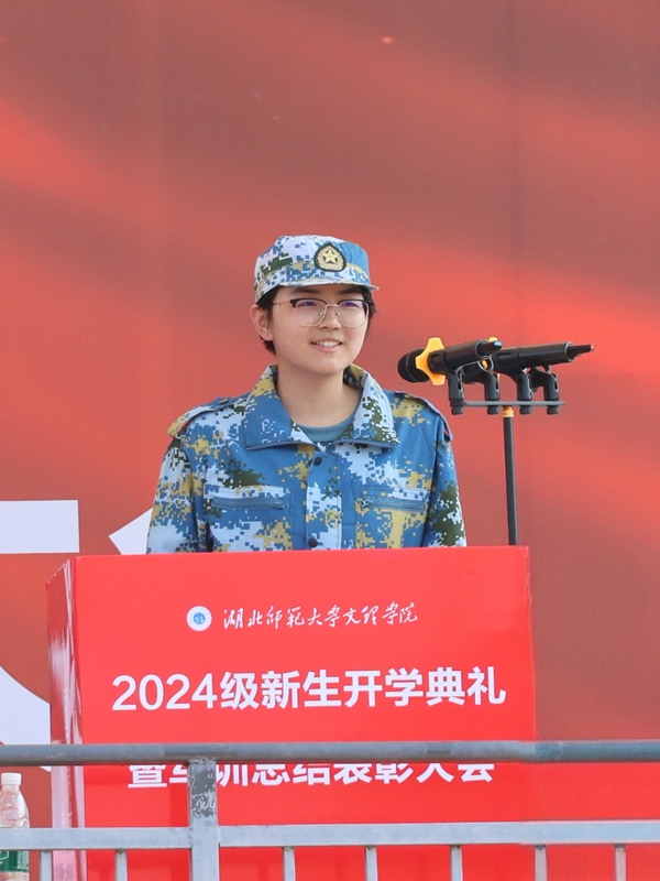老生代表张钰娴发言激励同学们传承军训精神,勇敢面对生活中每一个挑战,树立新学期目标,团结互助,共创美好未来。