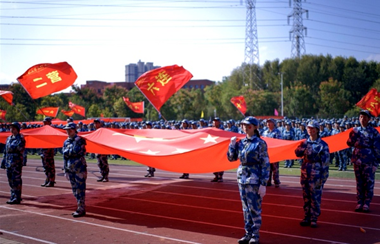 随后,擒敌拳、女子舞蹈、旗语、匕首术、军棍表演、战术动作对抗等方阵依次表演,一场场充满力量与美感的表演让现场掌声与喝彩声不断,展示着文理学子的青春风采和军事技能。