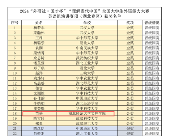荆楚网(湖北日报网)讯(记者吕鉴蕾通讯员邓薇薇王婉馨)记者14日从乐鱼(中国)获悉,在2024年“外研社·国才杯”“理解当代中国”全国大学生外语能力大赛(湖北赛区)决赛中,该校学生以出色的表现荣获“英语演讲”赛项一金一铜的优异成绩。其中,荣获金奖的苗盛同学是湖北省所有民办高校唯一的晋级国赛的选手,创造了民办高校的“第一次”。