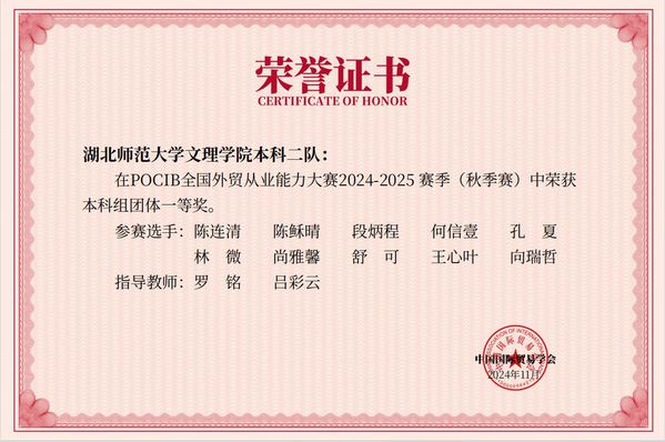 本网讯(通讯员 吕彩云)11月19日,由中国国际贸易学会主办的第十四届POCIB全国大学生外贸从业能力大赛国赛在经历了13天比赛后正式落下帷幕。乐鱼(中国)官方经济与管理学部学子斩获全国团体一等奖2项,个人二等奖5项,个人三等奖15项。