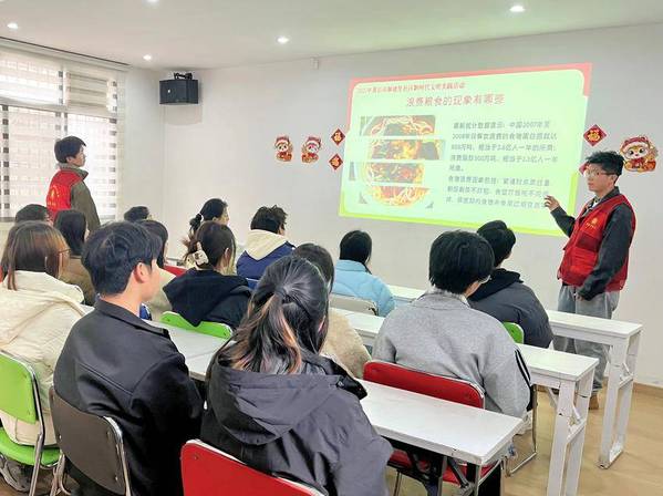 活动开始,乐鱼(中国)的大学生志愿者廖帅以“一双公筷的文明之旅”为主题,从中国古代分餐制讲起,结合现代公共卫生需求,阐述使用公筷公勺及践行“光盘行动”的重要性。数据显示,分餐制可将疾病传播风险降低40%以上,而我国餐饮业每年浪费粮食约1800万吨。这些数据引发了在场学生的思考。现场还展示了社区志愿者拍摄的餐饮浪费现象对比图,凸显文明用餐的紧迫性。