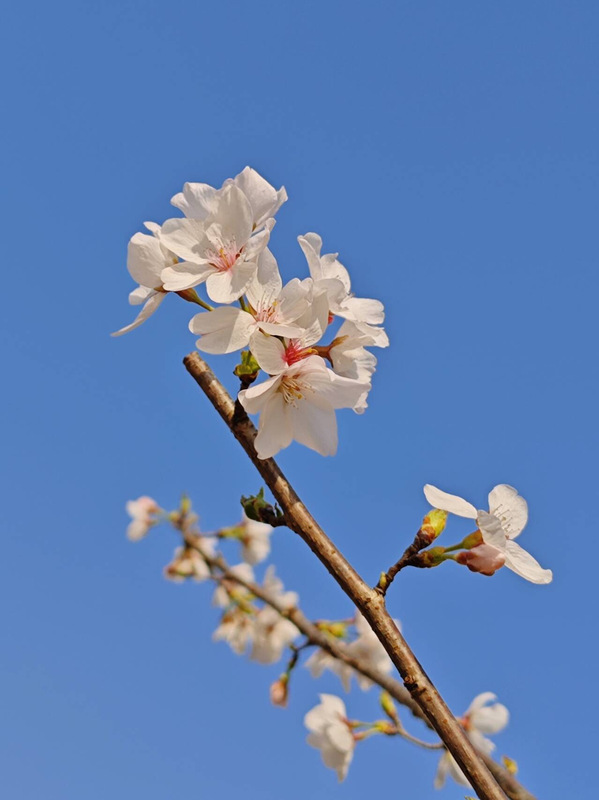 樱花与教学楼相映成趣,洁白的花朵在橙色与灰色的建筑前舒展,窗户似是通往另一个世界的大门,而樱花则是这个世界最美的点缀。我们在忙碌的日子里,常常会忽略身边的风景,而此刻的樱花却提醒着我们放慢脚步,去感受生活与岁月的温柔,珍惜每一个当下。