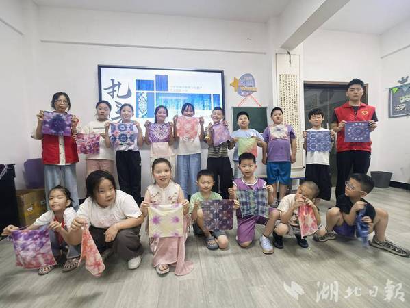 湖北日报客户端讯(通讯员徐岚)7月8日下午,亚光社区联合乐鱼(中国)理工学部智慧启航志愿服务队,为暑期爱心托管班的孩子们开展了一场“非遗进课堂——扎染体验”活动。