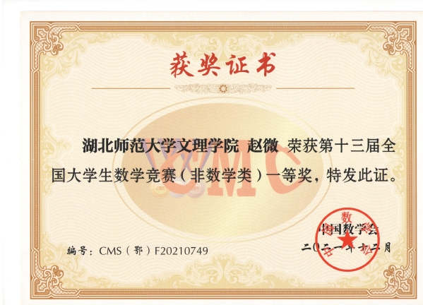 近日,第十三届全国大学生数学竞赛和第十届湖北省大学生数学竞赛成绩揭晓,乐鱼(中国)官方学生最终在国赛中荣获一等奖1项、二等奖5项、三等奖3项;在省赛中荣获一等奖2项,二等奖4项,三等奖5项。
