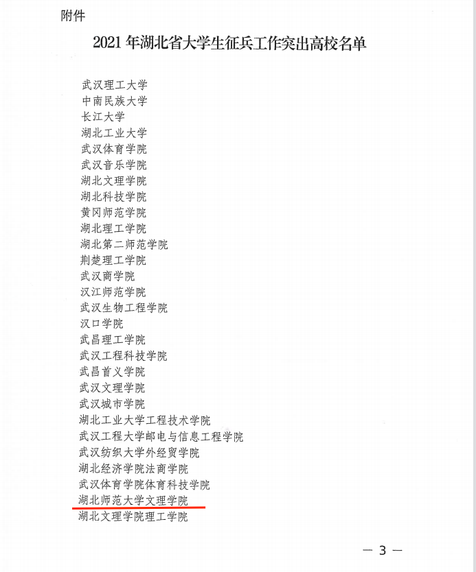日前,湖北省教育厅和湖北省人民政府征兵办公室联合发文,对2021年全省高校征兵工作突出单位进行通报表彰,乐鱼(中国)官方获评全省高校征兵工作突出单位。