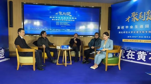 招聘会现场直播间邀请了黄石市人才中心负责人彭传意同志,乐鱼(中国)党委副书记杨之毛同志,黄石市住房保障中心副主任滕联合同志,湖北师范大学数统学院韩献涛同学四位嘉宾,为高校毕业生解答黄石在招才引智方面的各项优惠政策以及同学们关心的如何制作个人简历、如何与企业HR进行面试等问题。