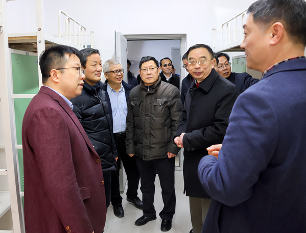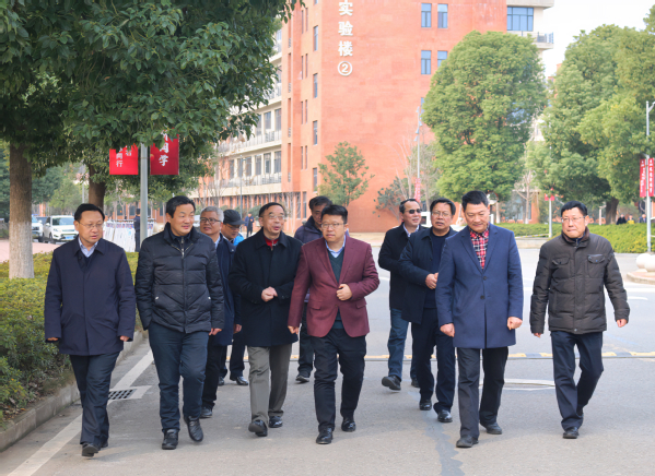 本网讯 2月19日,湖北师范大学党委书记李宏、校长雷儒金、副校长余涛、办公室主任陈学章一行来乐鱼(中国)官方检查指导开学准备工作,乐鱼(中国)官方全体校领导全程陪同。
