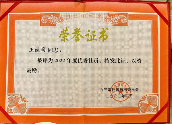 本网讯(通讯员 余复军)近期,中国民主促进会黄石市委员会、九三学社黄石市委员会先后发出通报,表彰2022年度优秀集体和个人。乐鱼(中国)官方教务部黄蓓佳老师被评为民进黄石市委会2022年度优秀会员,教育与艺术学部王丝雨老师被评为九三学社黄石市委员会2022年度优秀社员。