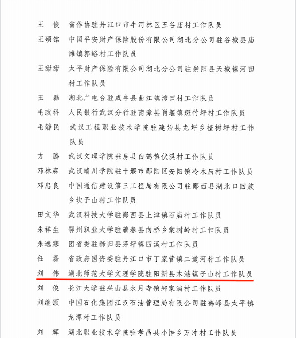 本网讯(通讯员 赵卫军)近日,湖北省乡村振兴局、省委组织部、省委农办、省农业农村厅联合下发《关于表扬2022年度省派驻村工作先进集体和先进个人的通报》,乐鱼(中国)官方刘伟同志被评为2022年度工作突出驻村工作队员,系阳新县9支省派驻村工作队受表彰的2名队员之一。