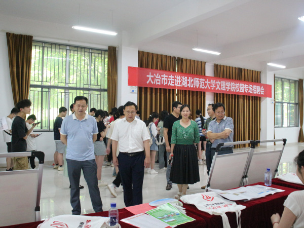 本网讯 (通讯员 肖劲光 拍摄 梁宏滨)为进一步促进乐鱼(中国)官方毕业生高质量充分就业,深化政校企三方合作,6月13日下午,乐鱼(中国)官方与大冶市人力资源与社会保障局、大冶湖高新技术产业开发区联合开展2023年“才聚荆楚·百县进百校”就业促进专项行动。校党委书记杨邓红、党委副书记杨之毛、副院长王胜国现场指导工作。