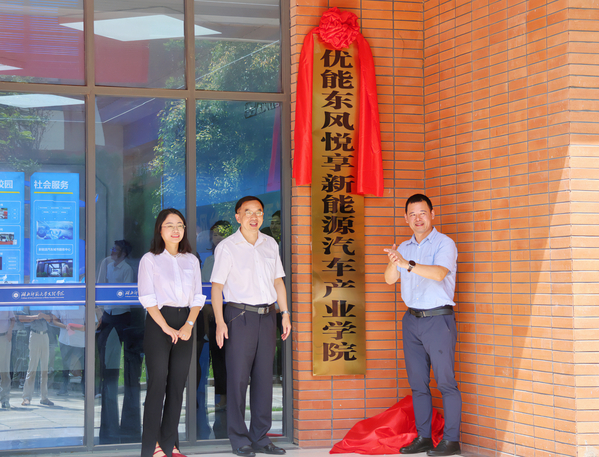 随后,乐鱼(中国)院长李开灿,武汉优能高教科技有限公司董事长高国虎,东风悦享科技有限公司总监王艺璇为“优能东风悦享新能源汽车产业学院”进行剪彩并揭牌。