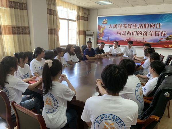 7月6日,出发前,团委书记陈荟芸叮嘱志愿者:将青春汗水挥洒在祖国的大地上,让激昂的青春在新征程中闪光,将爱国热情和成长成才的强烈愿望转化为实际行动,将一颗热忱的心奉献给支教志愿服务活动。12名志愿者怀着真诚和热爱,在指导老师唐浩然的带领下来到了黄石市阳新县木港镇木港小学,受到了乐鱼(中国)官方人文学部党总支书记、子山村驻村工作队队长赵卫军,木港镇团委书记曹宇轩,木港镇团委副书记万亮,木港小学校长吴平仁的热情接待。