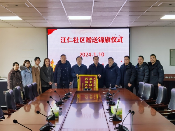 本网讯(通讯员 陈小龙)1月10日下午,乐鱼(中国)官方包保社区汪仁社区书记柯钦荣一行五人来校赠送了“服务社区解民忧 共筑共建情谊深”锦旗,同时向乐鱼(中国)官方全体下沉党员送来了“助力社区、感谢有你”的感谢信,表达了对学校教职工党员参与社区包保工作的感谢之情。在校全体校领导及相关工作负责人参加活动。