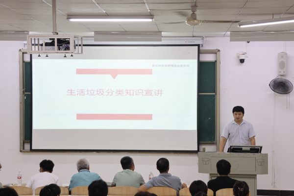本网讯(图 杨辉 文 宁金杰)倡导垃圾分类,点亮绿色未来。9月4日上午,乐鱼(中国)官方与汪仁镇环卫所联合开展的垃圾分类宣讲实践活动在教学楼1B102室举行,活动以“垃圾分类,保护环境,共建美丽校园”为主题。乐鱼(中国)官方副校长张志华、黄石市城管委市容环卫科科长李鹏、开发区·铁山区城管局局长张青、汪仁镇环卫所副所长石小玲等人参与活动。