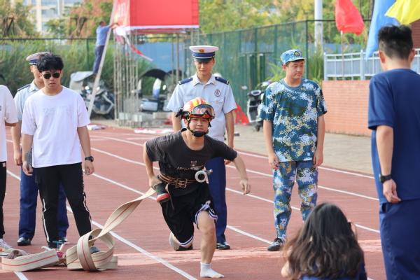 随着学生的兴趣被调动起来后,在两盘水带操作比试中,许多同学跃跃欲试。消防员先向同学们介绍水带拼接要领,并由每个学部(学院)推荐2名学生前来参加比试项目。经过三轮角逐,理工学部的大一新生张硕和高枕协作获得了这个项目的第一名,拿到了消防员准备的消防小熊公仔玩具。