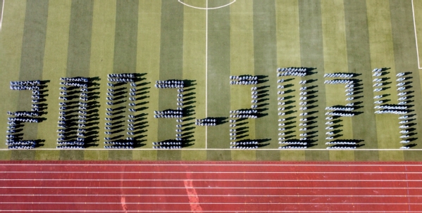 分列方阵的检阅结束后,摆字方阵伴随悠扬的音乐变换队形,用精准的动作歌颂伟大祖国,给现场师生带来精彩的视觉瞰宴。