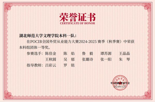 本网讯(通讯员 吕彩云)11月19日,由中国国际贸易学会主办的第十四届POCIB全国大学生外贸从业能力大赛国赛在经历了13天比赛后正式落下帷幕。乐鱼(中国)官方经济与管理学部学子斩获全国团体一等奖2项,个人二等奖5项,个人三等奖15项。