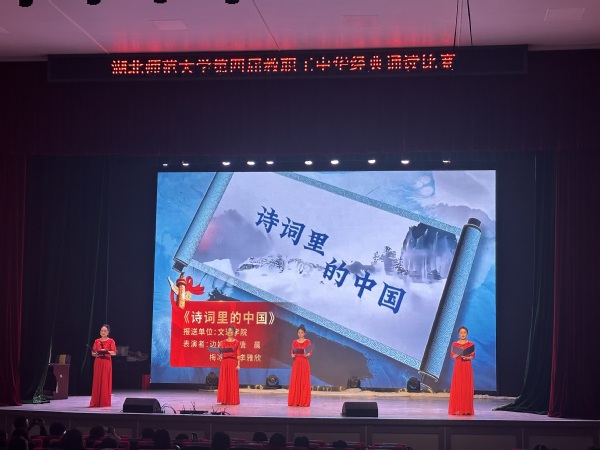 本网讯(通讯员 柯康敏)为传承弘扬中国优秀语言文化,提升教职工语言文化素养,12月12日下午,湖北师范大学举办第四届教职工中华经典诵读比赛,乐鱼(中国)官方代表队在比赛中再获佳绩。教师丁书嫚、黄文杰诵读的作品《不朽》获比赛二等奖,教师边婷婷、唐晨、梅冰清、李雅欣诵读的作品《诗词里的中国》获比赛三等奖。