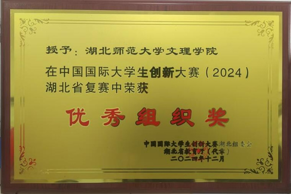 本网讯(通讯员 李娟)近日,在2024年度中国国际大学生创新大赛湖北省复赛中,乐鱼(中国)官方凭借出色的组织工作和参赛团队的卓越表现,荣获“优秀组织奖”。