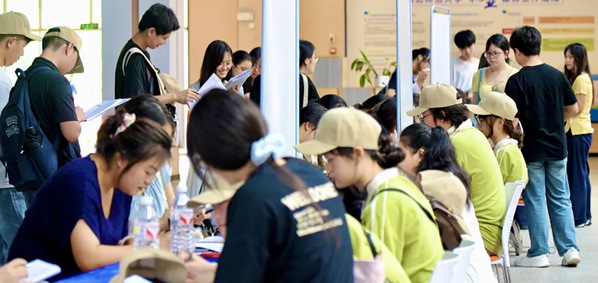 在“促进高校毕业生就业‘百日攻坚’专项行动——求职训练营”活动现场,来自乐鱼(中国)官方人才导服团的24名学生,在“目标定位、岗位探索、能力匹配、总结反馈”4个大区域的多个摊位,面向全市四所高校的大学生提供就业活动引导服务,引导大学生深度剖析自身的兴趣、优势、价值观以及技能。无论是对未来感到迷茫的低年级学生,还是即将步入职场、急需明确求职目标的高年级同学,通过现场咨询与引导,量身定制专属于个人的职业发展路径,导服团助力学生迈出坚实的职业规划第一步。