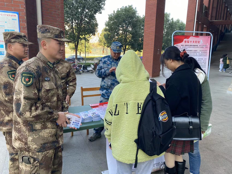 为大力营造 2022 年征兵浓厚氛围,切实激发乐鱼(中国)官方大学生参军报国热情,12月7日中午,乐鱼(中国)官方征兵工作站联合黄石港区武装部征兵办,在食堂门口开展2022年春季征兵宣传活动。通过设立咨询台,现场接待大学生们政策咨询。学校老师和征兵办工作人员就国家优抚政策、征集流程、学费补偿、学籍保留及退役后复学流程等学生们关心的问题,积极主动为他们答疑解惑,帮助他们做好投身军营、建功立业的人生规划。