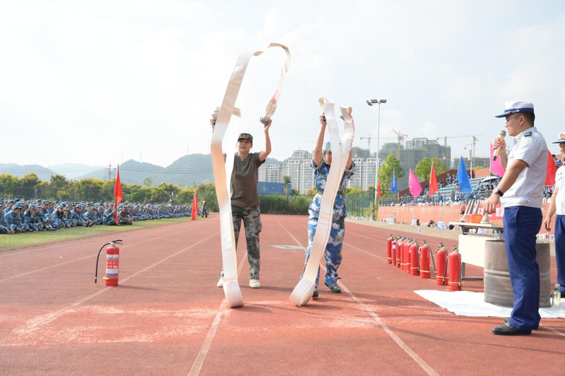 活动开始前,后勤保卫部涂亦乐老师强调了此次培训的目的及消防工作的重要性,指出容易出现的消防安全隐患及防火策略。随后,消防指战员重点讲解了火灾发生的原因、怎样预防火灾、火场逃生基本技能,遇到火灾的正确处理方法以及如何正确报警等知识。同时,组织了消防器材讲解演示,重点对灭火器和消防水带的连接使用进行了实地操作演练,最后开展了“火灾扑救”消防实战演练,在消防指战员的指导下,学生代表分组拿起地上的灭火器按照教官所讲的内容进行灭火实战演练,将模拟的火灾现场迅速扑灭。