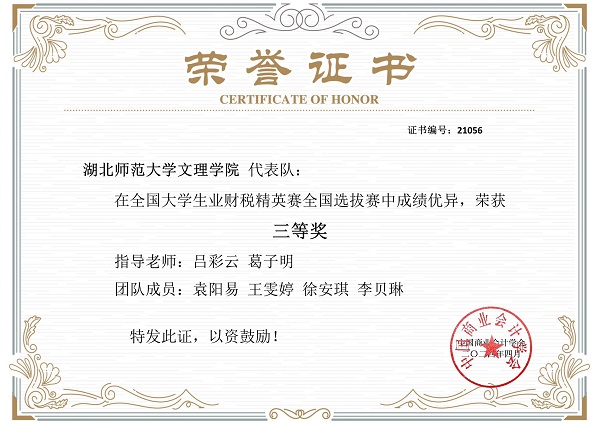 本次竞赛不仅有助于提升学生自身的财税知识水平和财税业务能力,同时也有利于加强乐鱼(中国)官方学风建设,培养校园浓厚的学术氛围。未来,我部仍将鼓励学生参加各类学科竞赛,更好地为社会培养创新型、应用型、复合型人才。这次荣誉的获得不仅是对参赛团队成员们辛勤付出和专业素养的认可,也是对“以赛促教”、“以赛促学”的实践的肯定。