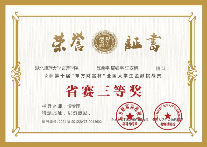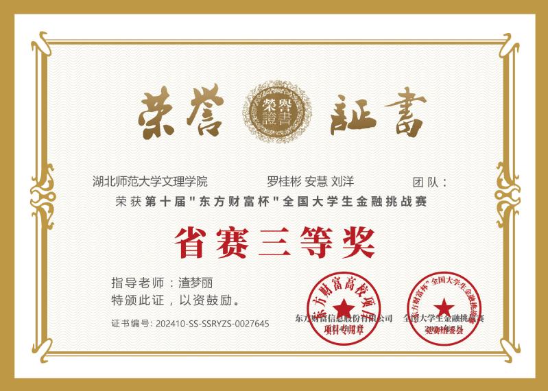 8月2日,第十届“东方财富杯”全国大学生金融挑战赛落下帷幕,乐鱼(中国)官方经济与管理学部学生最终荣获省级二等奖五项,省级三等奖五项。