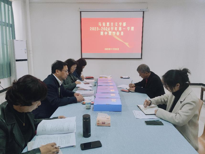 2023年11月23日,马克思主义学部在3号实验楼208会议室召开了本学期期中座谈会。校党委书记杨邓红、教务部副部长胡敏、教学督导刘金梅、教务部屈婉婷莅临指导,马克思主义学部部分老师参加会议。