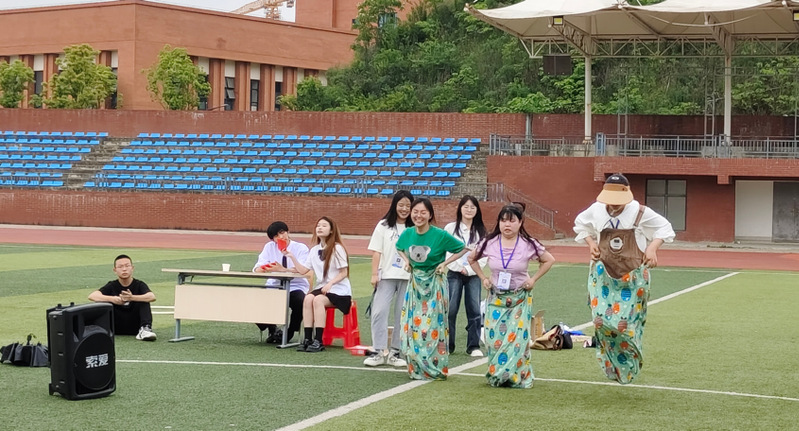 活动共分为三个小游戏,分别是“一穿到底”、“抢板凳”、“动感接力”。由各社团小组成员组成团体进行比赛。每个游戏都需要组员们相互配合、相互鼓励来完成,所以同学们都拼尽全力,认真对待。活动中期,魔术社为大家带来了一场奇幻的表演盛宴,丰富了活动内容,把活动氛围推向高潮。在炎炎烈日下进行拓展活动,同学们不仅感受到了太阳的温度,而且感受到了青春的热情。活动最后,全体人员合唱歌曲,时间在欢声笑语中飞逝,游戏也走近尾声。此次拓展活动不仅丰富了同学们的课余生活,带来了很多欢乐和趣味,也让同学们感受到了团队的重要性,学会在活动中放开自我、展现自我、奋力拼搏。